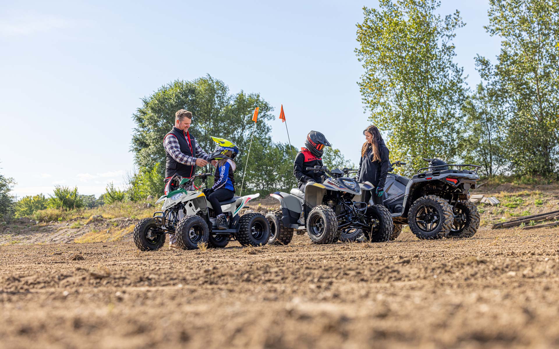 A 196cc 4-stroke engine and easily adjustable speed limiter allows younger riders to grow with their ATV. Made for riders ages 14+.